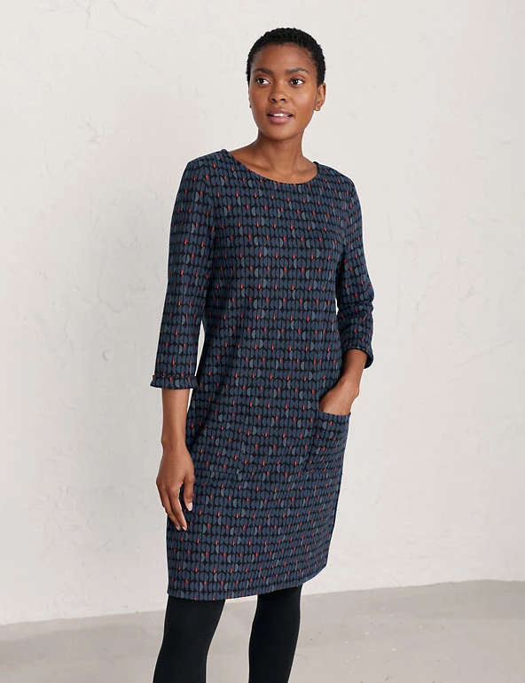 This cotton-rich dress from Seasalt Cornwall is designed in a simple shift shape that lets the unique print do the talking. It’s cut in a regular fit and falls to a versatile knee length, creating a flattering silhouette. A rounded neckline and three-quarter sleeves give the dress a relaxed feel. It’s complete with roomy patch pockets and standout back zip fastening. Made with organic cotton.