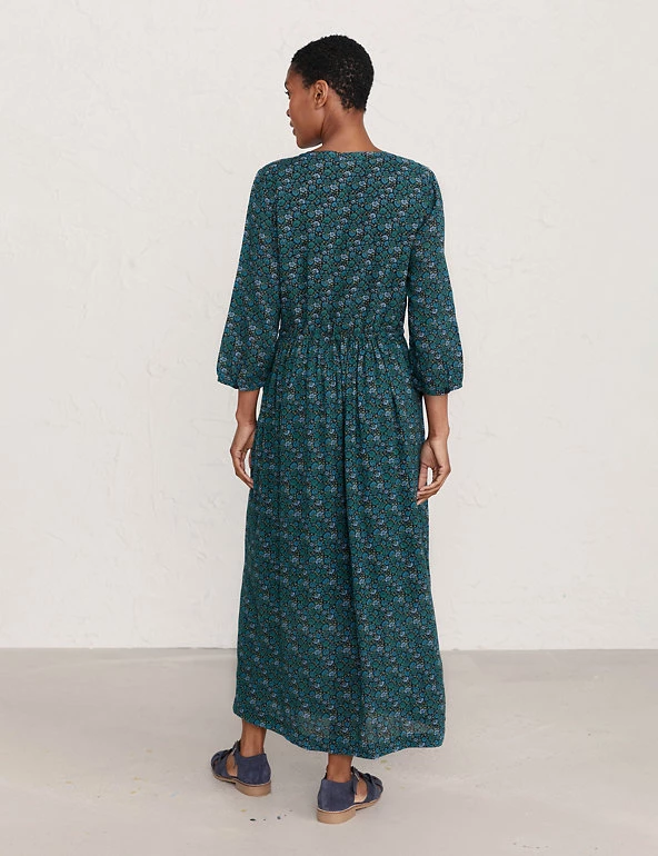 Decorated with dainty florals, this Seasalt Cornwall dress brings boho charm to your year-round looks. It’s cut to a regular fit, with a simple round neck and three-quarter length sleeves. The waisted design includes a tie belt to highlight your figure and classic button fastening. It’s crafted with a touch of linen for a breathable finish and falls to an on-trend maxi length.