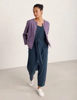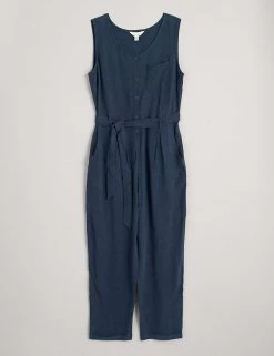 Keep it classic in this linen-rich jumpsuit by Seasalt Cornwall. The simple sleeveless design is complemented by a contemporary button-front closure and a flattering self-tie belt at the waist. Thanks to the lightweight and soft feel of the fabric, this elegant piece will take you from day to night in ultimate comfort.