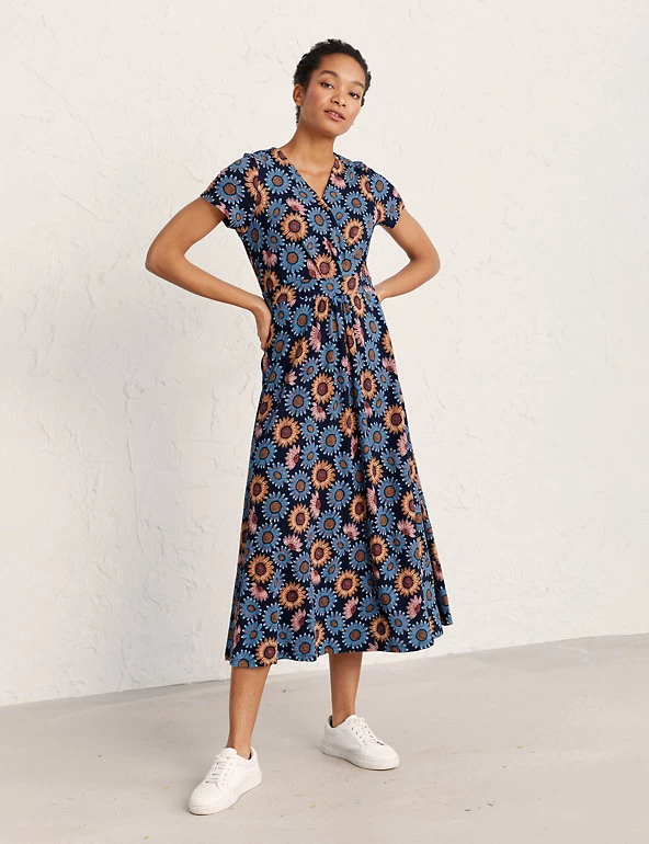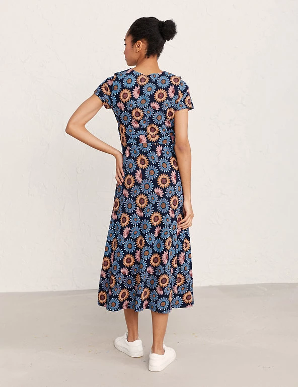 Embrace the florals with this organic cotton Seasalt Cornwall midi dress. Cut in a regular fit, it has breezy short sleeves and a classic v-neckline. The pintuck and waisted seam detailing is teamed with soft jersey fabric for a flattering figure-skimming shape. Made with organic cotton.