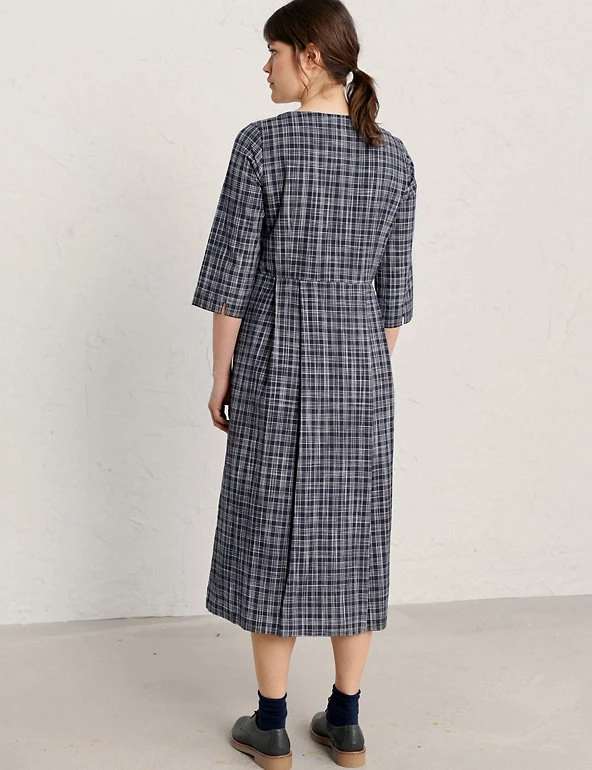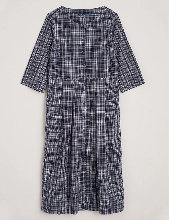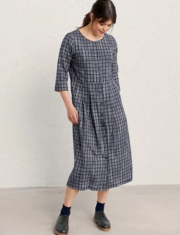 Check easy summer style off your list with this pure cotton midi dress from Seasalt Cornwall. With its relaxed fit and breathable fabric, this button-down piece is perfect for the warmer months. It’s slightly fitted at the waist for a flattering silhouette and has 3/4 length sleeves for just the right amount of coverage. The unique check print is super-crisp thanks to an individual thread dying process.