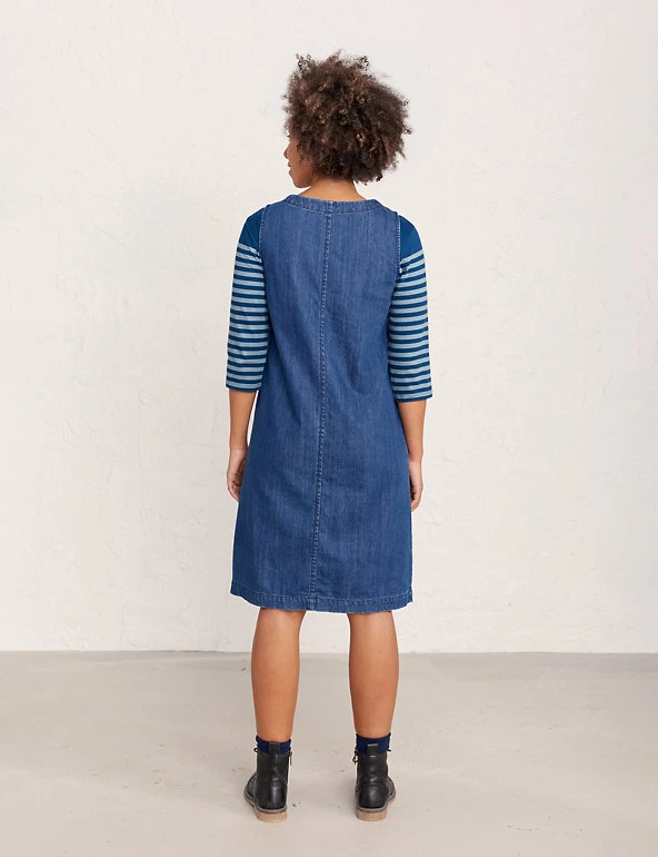 Refresh your weekend wardrobe with this pinafore dress from Seasalt Cornwall. It comes in a regular fit and is crafted from pure cotton denim. With a neat round neckline and sleeveless design, it’s finished with two deep pockets on the front that offer plenty of space to store essentials. The dress fastens with a concealed side zip.