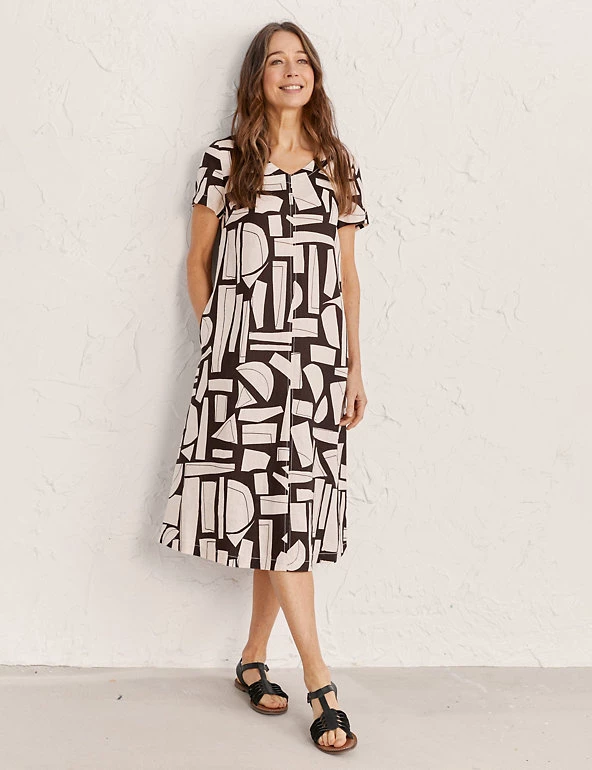 This distinctive printed shift dress by Seasalt Cornwall draws its inspiration from scenic summer days on the Cornish coast. Designed in a regular fit, this pure linen piece sports a feminine v-neck cut, flattering midi length and classic short sleeves. Inseam pockets add a functional finishing touch to this charming wardrobe favourite.