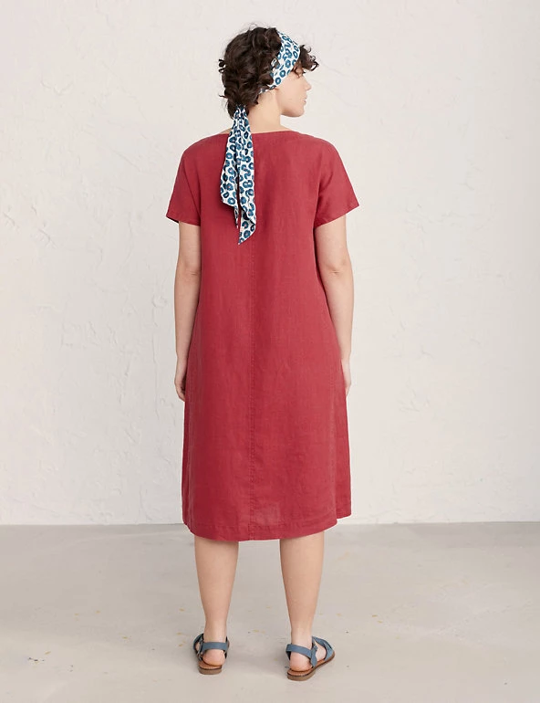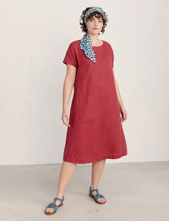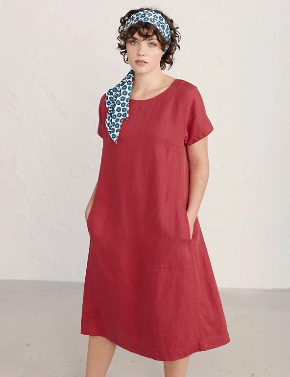 Crafted from lightweight pure linen, this shift dress from Seasalt Cornwall is perfect for balmy days. This elegant short-sleeved piece is made in a relaxed fit and falls to a midi length. A simple round neck complements the minimalist aesthetic, while the garment-dyed fabric provides a vintage-inspired finish.
