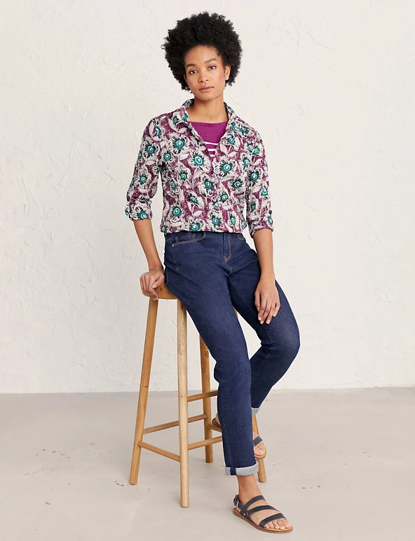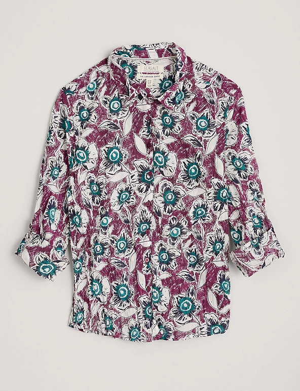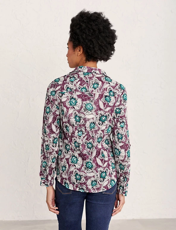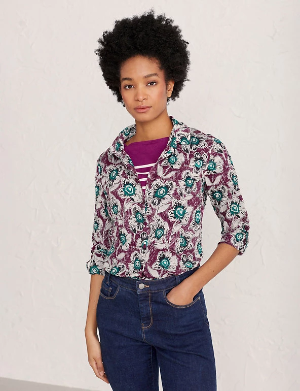 Crafted from pure organic cotton with a vibrant floral print, this Seasalt Cornwall shirt will bring extra cheer to casual days. It’s designed in a comfy regular fit with a classic collared neck. This versatile piece needs no ironing – simply wash and twist to keep the crinkly design. Made with organic cotton.