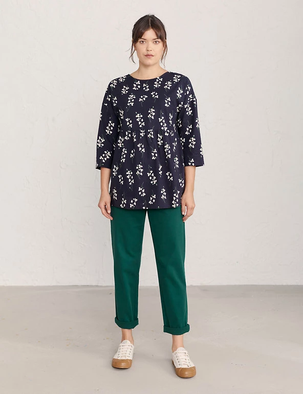 Made from breathable pure cotton, this Seasalt Cornwall long sleeve top will see you through any season. It’s cut in a regular fit, with gathering detail at the waist that creates a draped silhouette. The top is framed by a casual round neckline and flattering long sleeves.