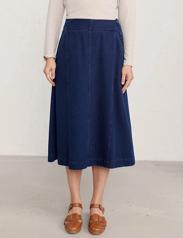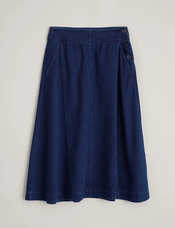 This versatile pure cotton skirt from White Stuff will be the base of endless outfits. The A-line shape is both flattering and comfortable, and has a gentle flare for extra volume. It’s complete with two working pockets and button fastenings at the side and falls at an on-trend midi length.