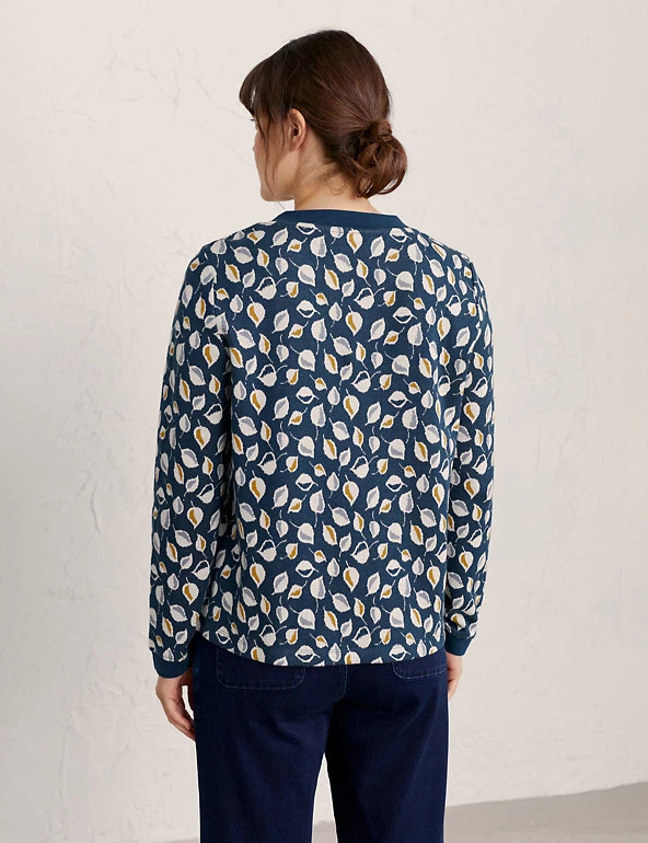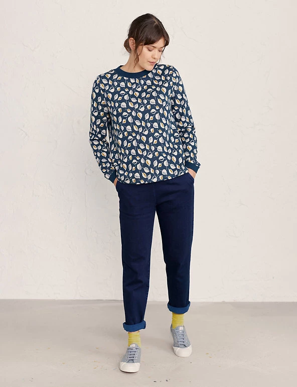 Add bold layers to your wardrobe with this leaf print sweatshirt from Seasalt Cornwall. It comes in a comfortable regular fit and is crafted from pure cotton for a soft and breathable feel. Contrast trims at the neckline and cuffs lend a stylish look.