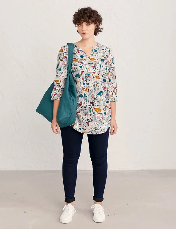 This Seasalt Cornwall tunic is crafted from pure organic cotton for cool, comfortable wear. Designed to flatter, it’s cut to a regular fit with 3/4 length sleeves and a notch v-neck. The eye-catching print is inspired by the scenic beauty of Cornwall. Two in-seam pockets complete the effortless design. Made with organic cotton.