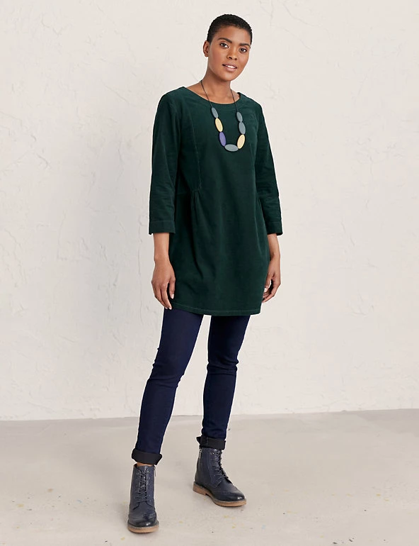 This Seasalt Cornwall tunic is crafted from pure cotton needlecord, for a soft handfeel and a gorgeously textured finish. Its flattering regular fit is enhanced by inset panels and gentle gathers that emphasise your waistline. A pretty round neckline and feminine three-quarter sleeves complete the look. Made with organic cotton.