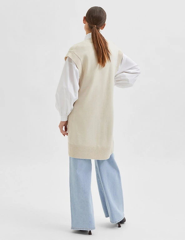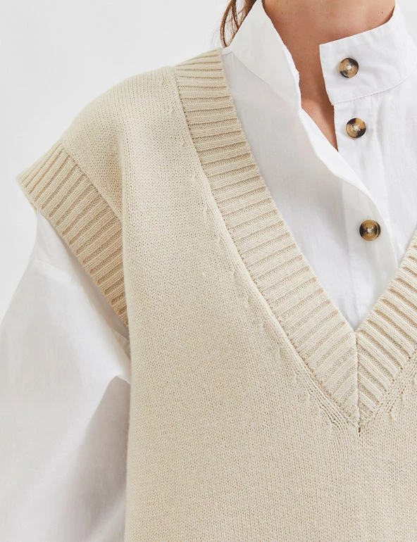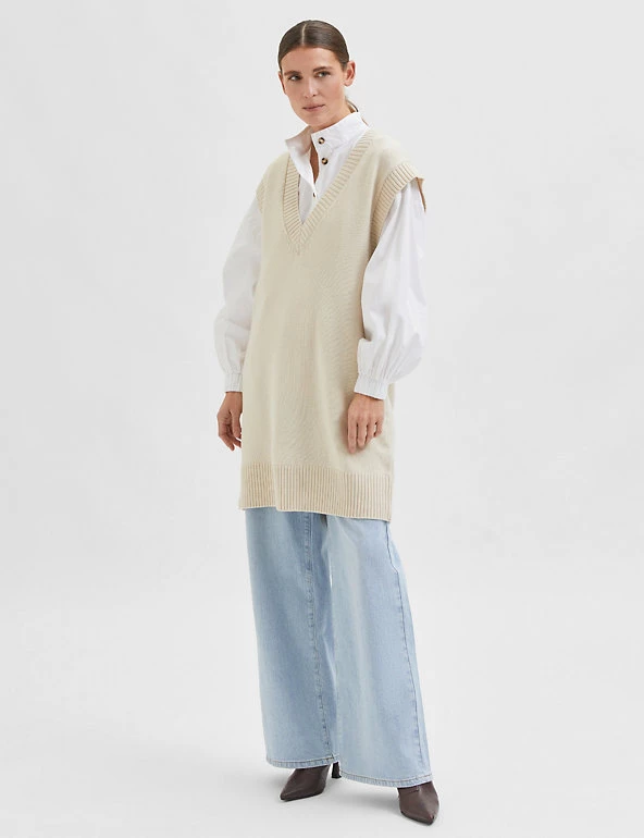 Crafted from a luxury wool blend, this understated jumper dress by SELECTED FEMME is equal parts cosy and stylish. The knitted piece is designed in a regular fit and has a flattering mini length and sleeveless cut. A ribbed trim on the v-neck, cuffs and hem adds a delicate finish.