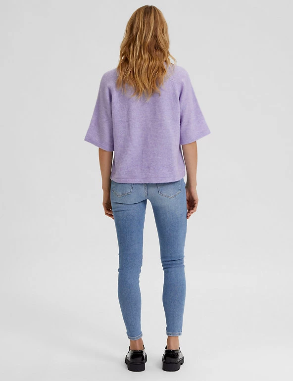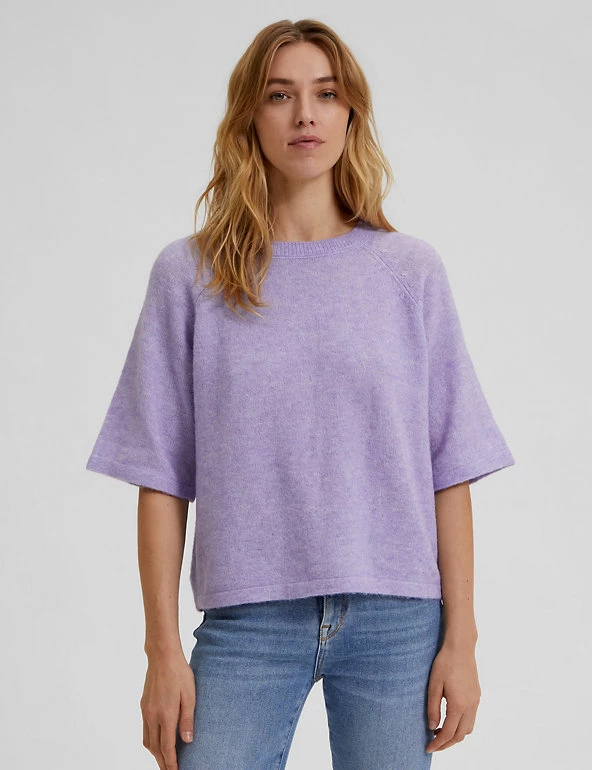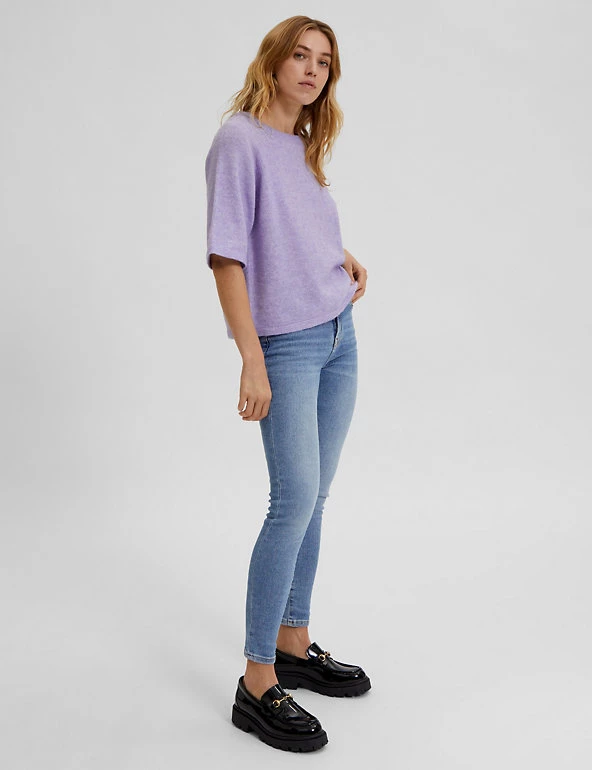 Keep it chic and minimalist by throwing on this cosy jumper by SELECTED FEMME, made with soft wool. Part of the Petite range, the knitted piece is designed in a comfortable regular fit. It has a simple crew neck, contemporary three-quarter sleeves and a ribbed trim on the collar. Made with recycled polyester.