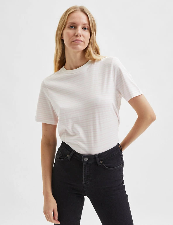 This organic cotton tee by SELECTED FEMME will have you looking pared-back and stylish for the weekend. Cut to a regular fit, this contemporary piece sports a nautical-inspired striped design and has a simple crew neck. Made with organic cotton.
