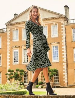 The clever construction of this faux wrap dress from Sosandar gives you a flattering fit without the risk of it falling open. The regular fit is combined with a v-neck, midi length and long sleeves to make an impact while being comfortable to wear. The bold leopard print will make an impact on any occasion.