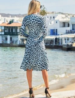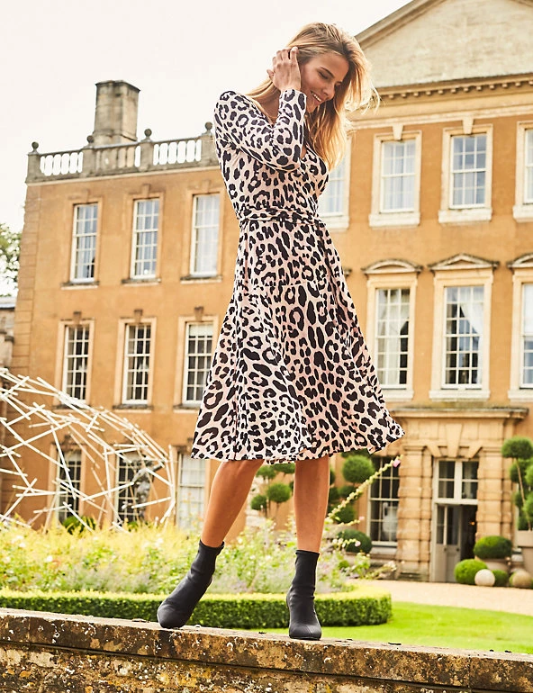 The clever construction of this faux wrap dress from Sosandar gives you a flattering fit without the risk of it falling open. The regular fit is combined with a v-neck, midi length and long sleeves to make an impact while being comfortable to wear. The bold leopard print will make an impact on any occasion.