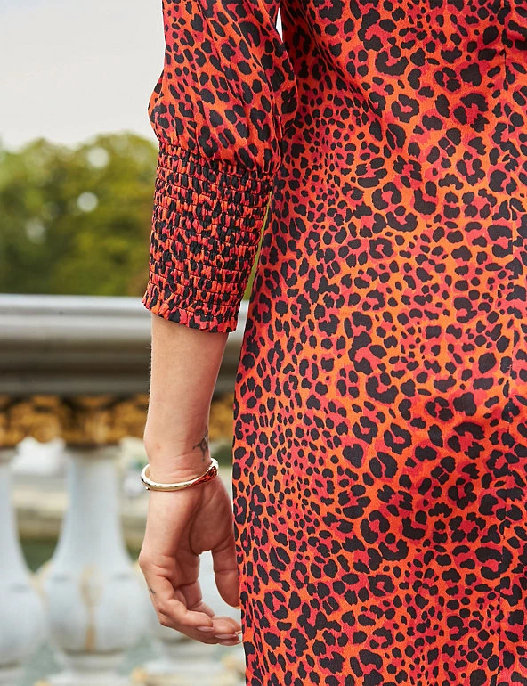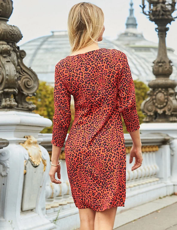 This animal-print dress from Sosandar will make a bold addition to your wardrobe. It’s cut to a comfy regular fit with a round neck and knee-length hem. The shirred cuffs create subtly puffed 3/4 sleeves for an on-trend look. The dress is lined for comfort and fastens with a discreet zip at the back.