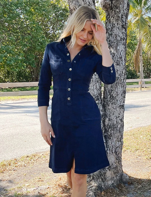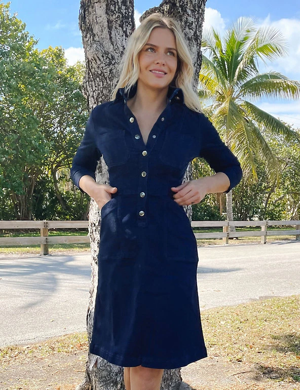 This denim shirt dress from Sosandar is a classic throw-on-and-go piece. It’s cut to a comfy regular fit in a figure-flattering A-line style and falls to the knee. Panel stitching and pockets at the hip add detail. Luxe silver poppers down the front make this a stand-out piece.