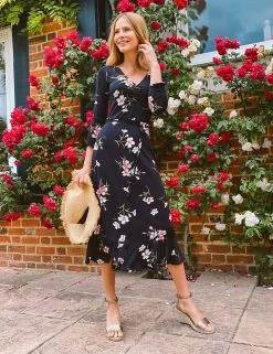 Add to your collection of florals with this jersey midi dress from Sosandar. This regular cut is designed to flatter, with a ruched v-neckline, three-quarter length sleeves and a matching waist tie. The skater silhouette is fitted at the bodice for a figure-skimming fit and flows into a gently flared skirt, with a frilled hem for a pretty finish.