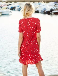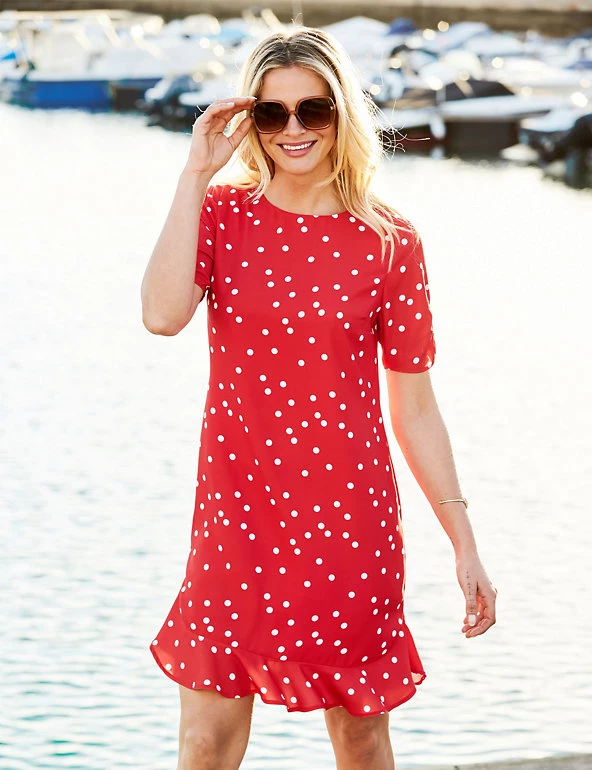 With its fun polka dot print and sophisticated silhouette, this shift dress by Sosandar is both playful and timeless. It’s cut to a regular fit, with a comfortable shift design, pretty ruched sleeves and classic round neckline. This dress features a feminine ruched hem that sits just above the knee. It’s finished with a back keyhole with a button and zip fastening at the back.