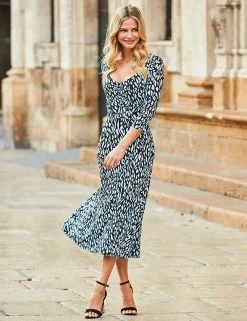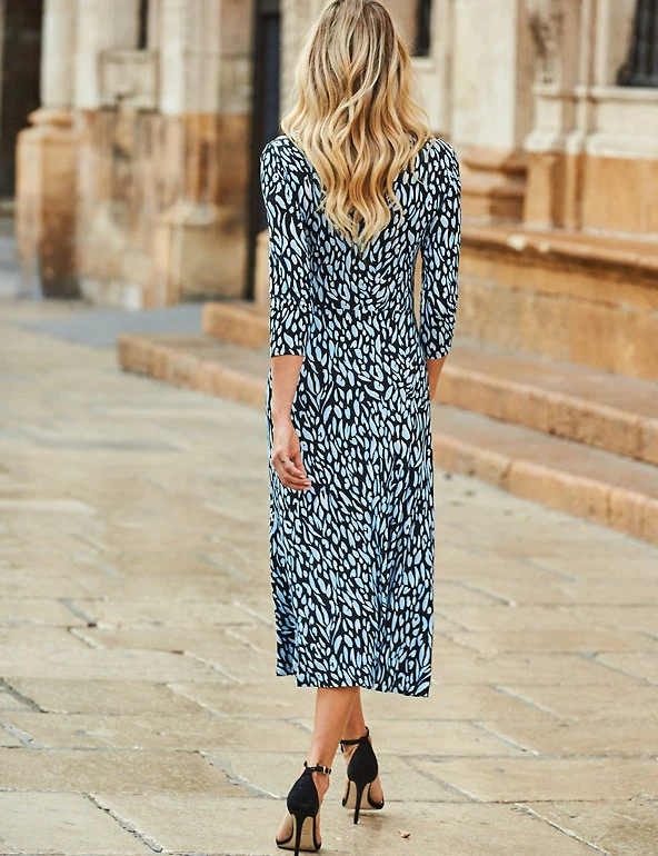 With its striking graphic print and flattering silhouette, this waisted dress from Sosandar is an ideal choice for day-to-evening wear. It’s cut in a comfortable regular fit, with an on-trend midi hemline. A v-neckline and three-quarter sleeves ensure a feminine air, and a fitted underbust panel gives extra definition to your waist.