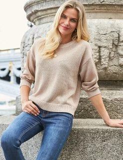Woven with a metallic fibre that gives it a subtle shimmer, this Sosandar jumper will elevate your casual outfits. It’s cut to a cosy relaxed fit, with a classic crew neckline and long sleeves. The ribbed trim detail adds a snug feel.