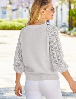 Complete your look with this unique pointelle jumper from Sosander. It’s cut to a relaxed fit to keep you cosy, with a flattering v-neckline. Knitted blouson sleeves add an eye-catching, feminine touch.