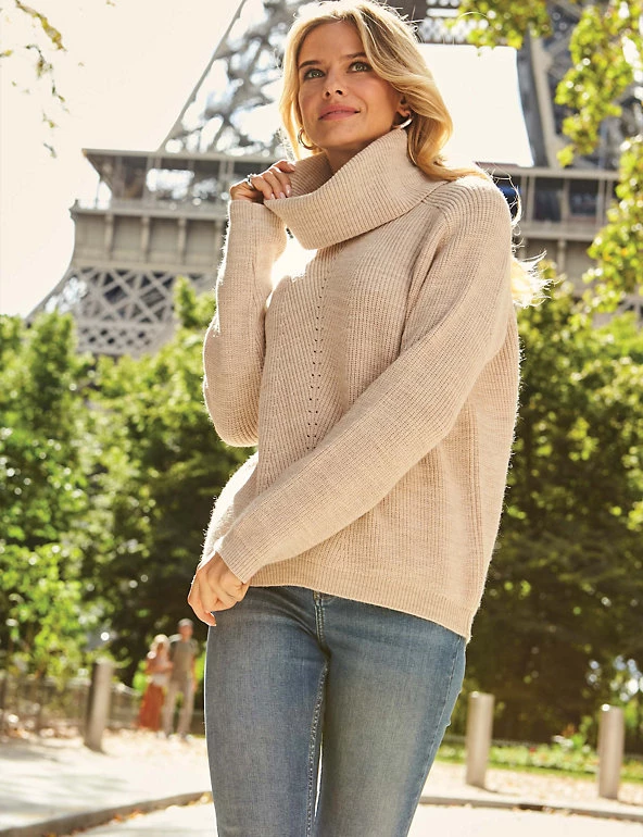 Add a cosy winter layer to any outfit with this knitted jumper from Sosandar. It’s cut to a comfortable relaxed fit with an oversized roll neck design. A cuffed hem and long sleeves offer extra snugness and the ribbed style creates a textured finish.