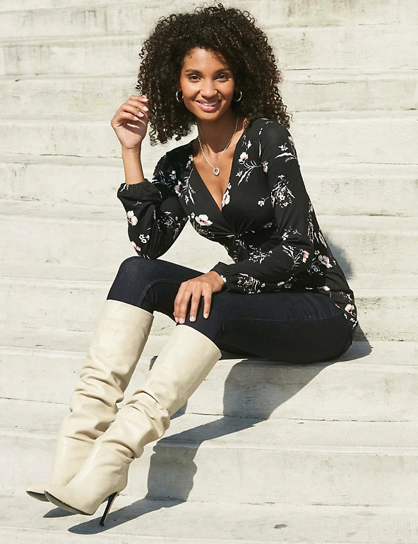 This pair of Sosandar knee-high boots will bring a touch of glamour to your footwear collection. Made from supple leather, they’re cut in a comfy regular fit with a sleek pointed toe. The pull-on boots sit on a stiletto heel and have an on-trend slouchy design.