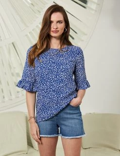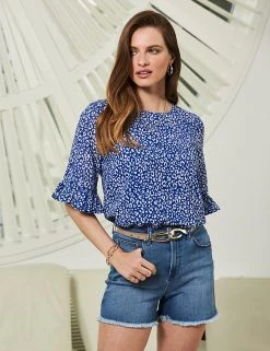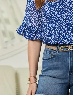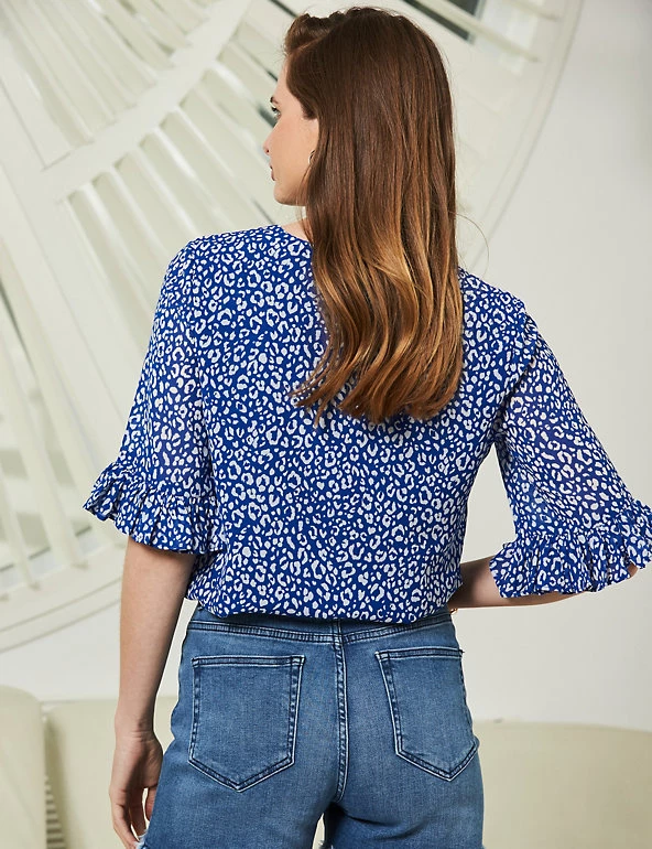 A timeless animal print means you’ll turn to this Sosandar blouse time and again. It’s cut to a comfy regular fit, with a casual round neckline. Ruffled short sleeves add a feminine touch to this versatile piece.