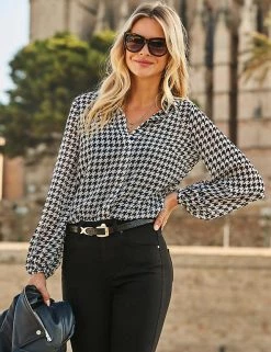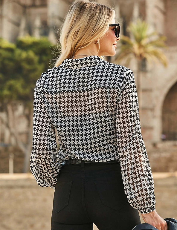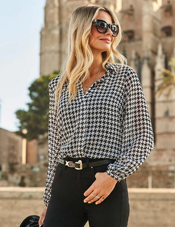 With its crisp dogtooth print, this Sosandar shirt brings a smart look to any outfit. It’s made in a comfortable regular fit, with a neat collared neckline and button fastenings. The sleeves are gathered to elastic cuffs to give an on-trend touch of fullness.