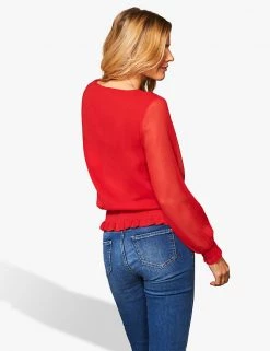 With its ruffled deep v-neck and shirred hem and sleeves, this blouse from Sosandar will make an elegant addition to your wardrobe. It has a comfortable regular fit with long sleeves. Its fluid cut and feminine style make dressing for any occasion a breeze.