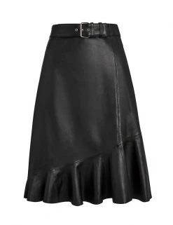 Go from day to night style in an instant with this chic leather skirt from Sosandar. It’s cut in a classic A-line silhouette, with an on-trend asymmetric ruffle hem. This versatile style has a matching buckle belt to highlight the waist, plus subtle topstitch detailing for a premium finish. It’s lined for comfortable all-day wear, with a concealed side zip fastening.