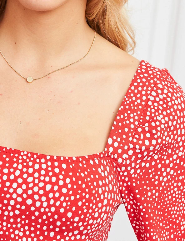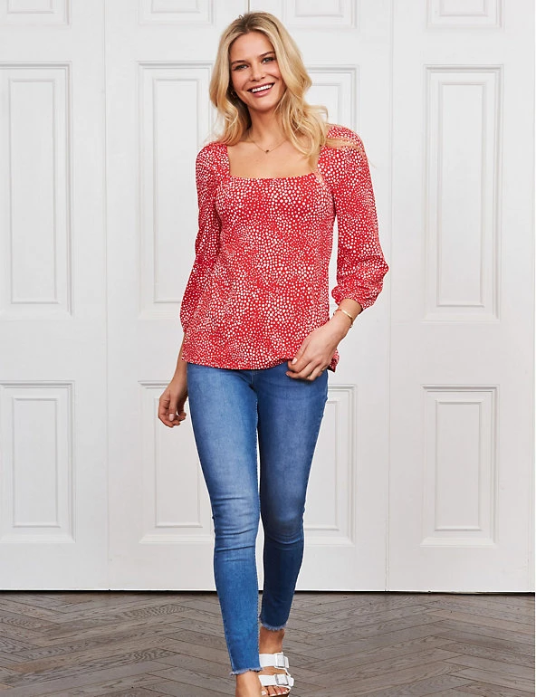 With a bright, confetti spotted pattern, this long-sleeved top from Sosandar will add a splash of colour to your wardrobe. It’s cut in a figure-flattering regular fit and has an eye-catching square neckline. The top is made from stretchy jersey fabric for extra comfortable wear.