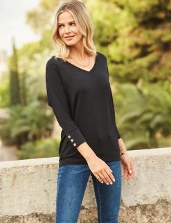 Opt for everyday elegance with this jersey top from Sosandar. It’s cut in a comfy relaxed fit with flattering three-quarter sleeves and a v-neck. Rose gold-tone buttons at the cuffs add a luxe finishing touch.