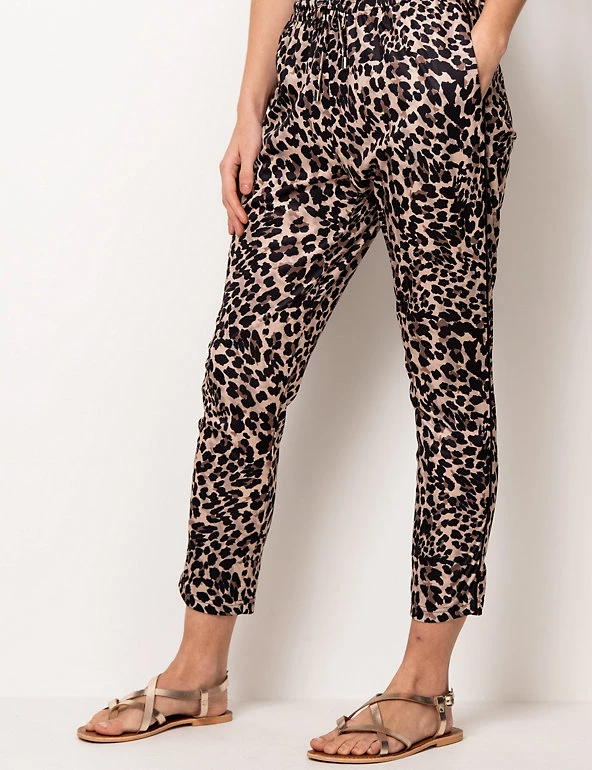 Indulge your wild side in comfort with these cropped animal print joggers from Sosandar. They’re cut to a slim fit through the leg for a flattering silhouette. Designed in a pull-on style, they feature a drawstring fastening on the waist for a flexible feel.