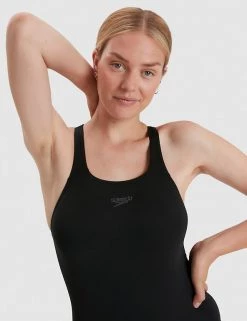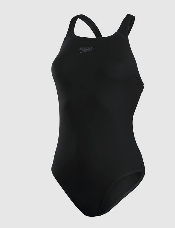 Dive into the pool looking on-trend in this sleek swimsuit from Speedo. With its classic scoop neck cut, this high-performance piece instantly flatters your silhouette. Thanks to innovative chlorine-resistant fabric, it’ll keep its colour and feel for longer. Made with recycled polyester.