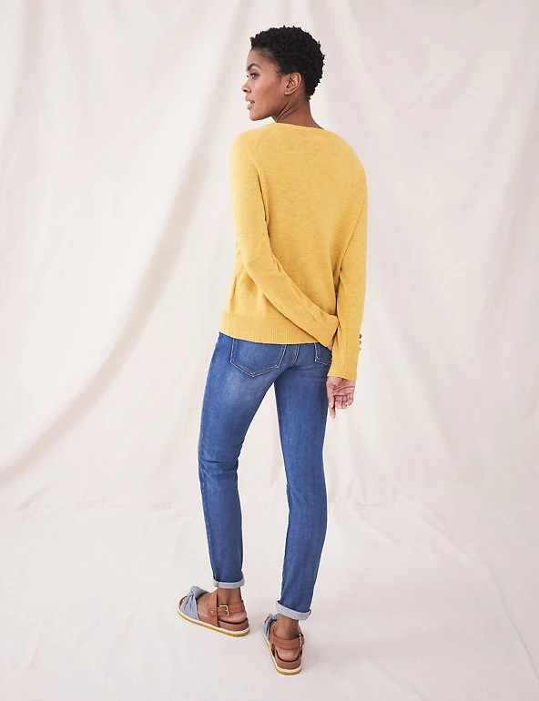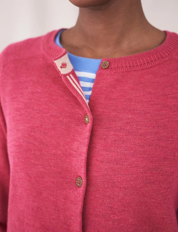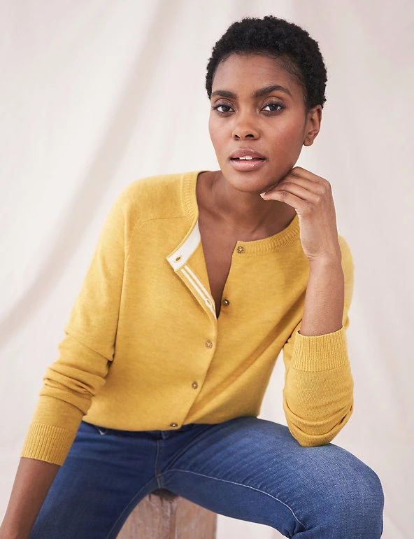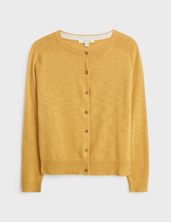 Add a versatile layer to your wardrobe with this pure organic cotton cardigan from White Stuff. Cut to a regular fit, this flattering piece is designed with a classic round neck and button fastenings. Ribbed trims give it a snug feel, and there’s a contrast trim on the inside. Made with organic cotton.