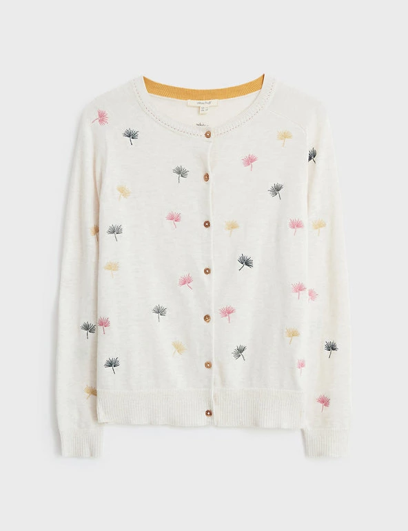 Knitted from organic cotton with an embroidered floral design, this White Stuff cardigan will add a pop of colour to ensembles. It’s designed in a comfy regular fit with a contrast button closure and a classic crew neck. This stylish piece is finished with ribbed trims for extra cosiness. Made with organic cotton.