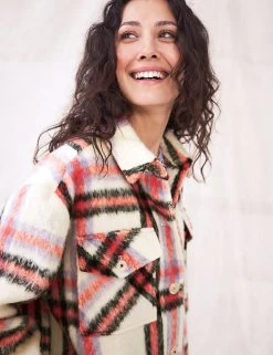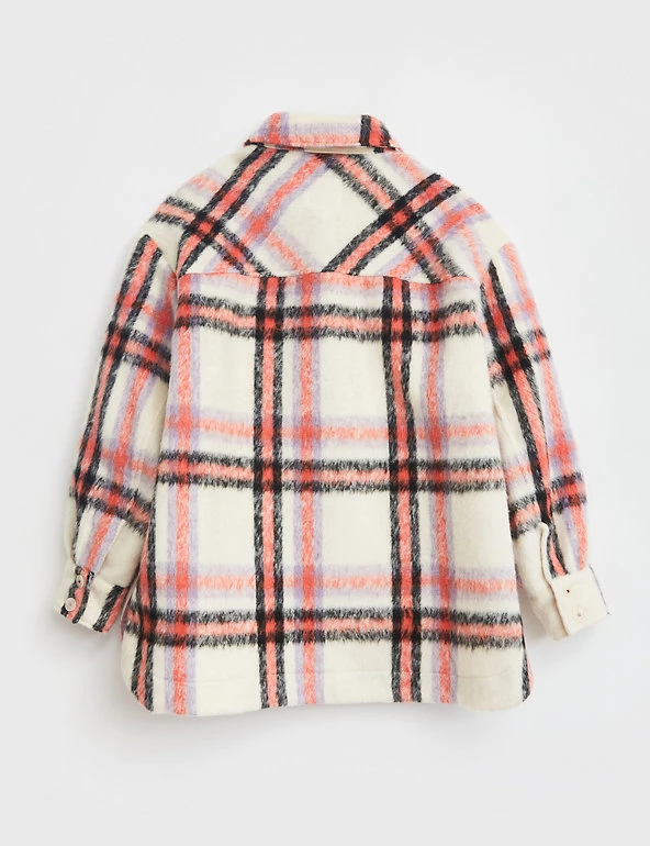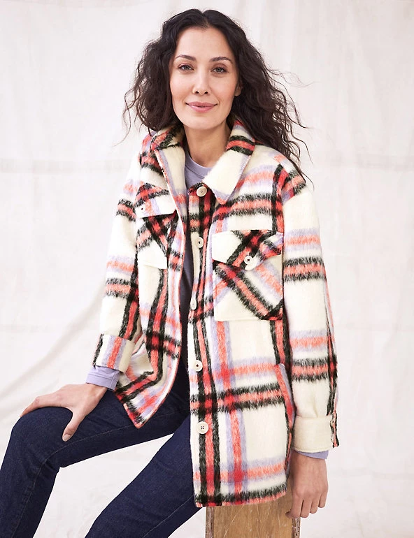 Printed with modern checks, this Americana-inspired shacket from White Stuff offers perfect transitional style. It’s designed in a regular fit, with a smart collared neck and cuffed sleeves. A four-pocket design, including two patch versions on the chest, keeps things classic. This layering piece has been crafted with a touch of wool to keep you cosy and fastens with buttons.