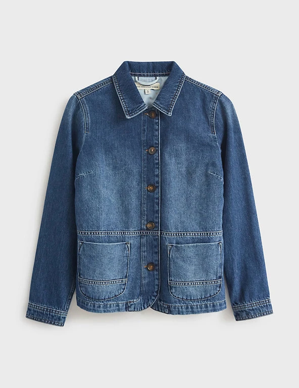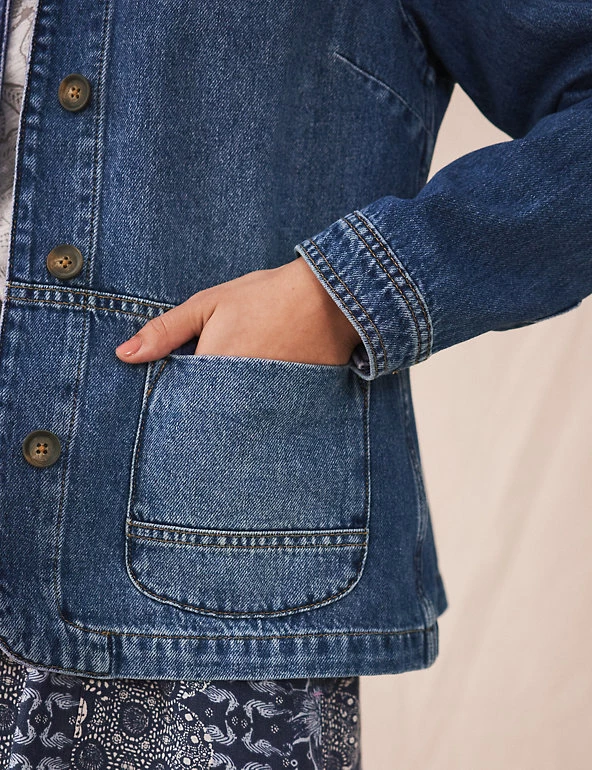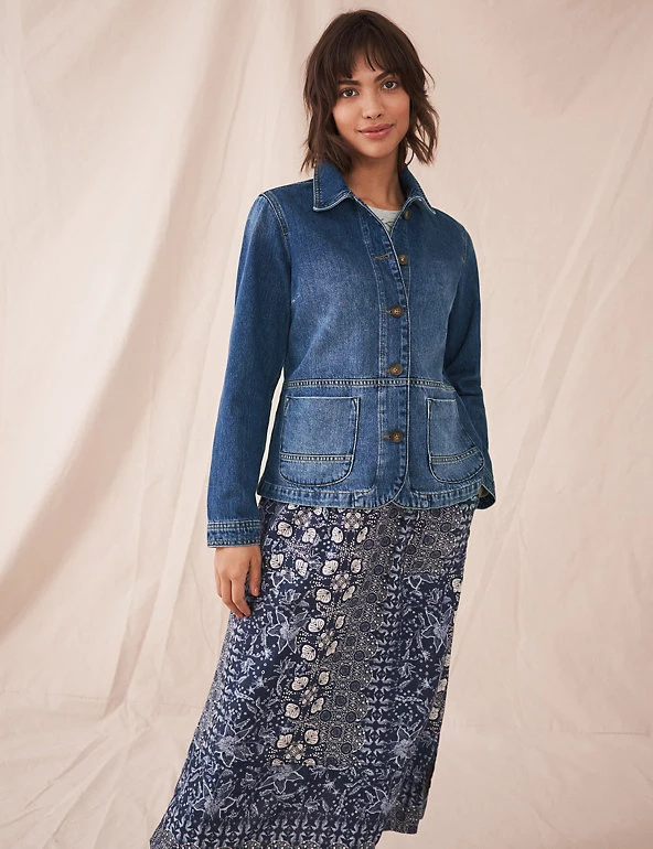 Refresh your denim collection with this pure cotton White Stuff jacket. It’s cut to a regular fit, with a classic collared neck and a rounded hemline for added interest. Two front pockets keep your essentials close and the stone-washed finish creates an authentic look. This piece has a button closure.