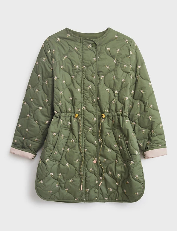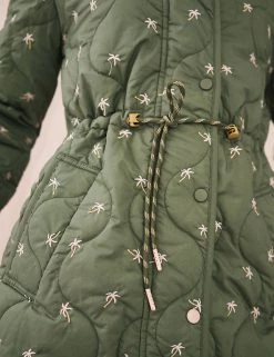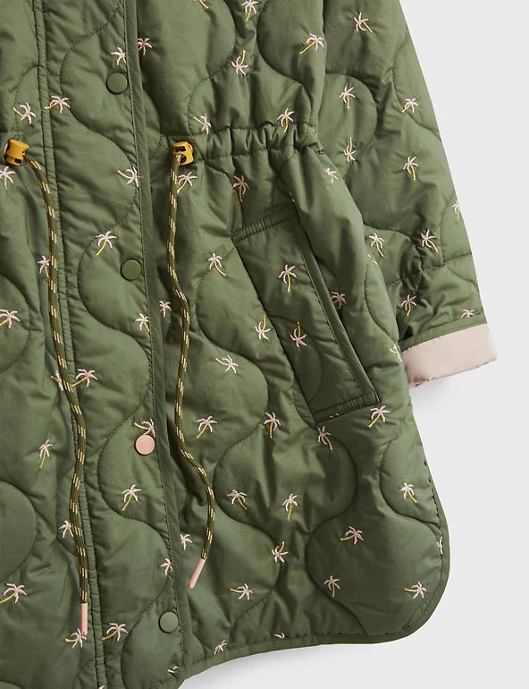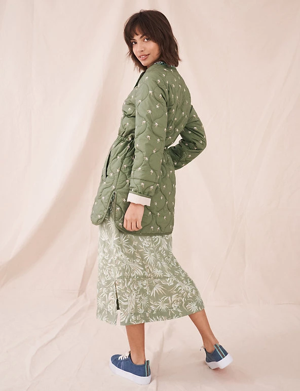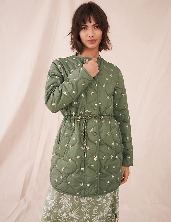 With its all-over palm tree embroidery, this pure cotton puffer jacket from White Stuff gives a quirky take on a must-have style. It’s made in a comfortable regular fit, with a full lining for extra comfort. Wavy onion quilting ensures a stylish look and a drawcord at the waist highlights your figure. A zip fastening and popper storm flap shut out chilly draughts. At the hips, pockets add handy storage for your essentials.