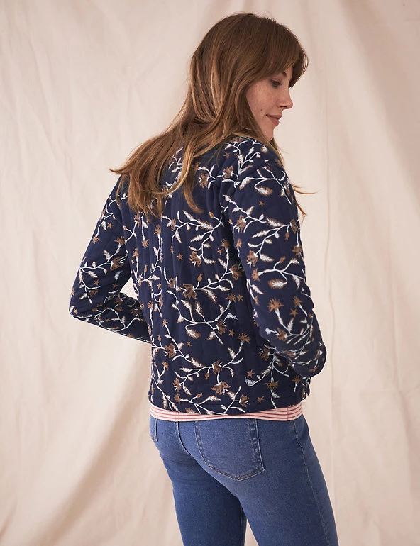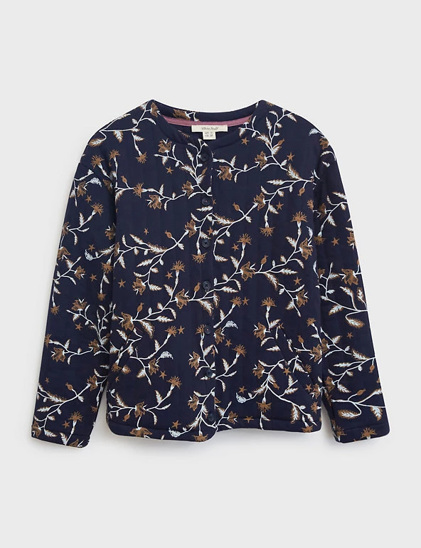 This White Stuff puffer jacket is the perfect lightweight layer to elevate your look. It’s crafted from pure cotton and designed in a comfy regular fit. Decorated with a pretty all-over floral print, the jacket has a contemporary collarless neckline and two handy side pockets.