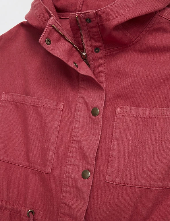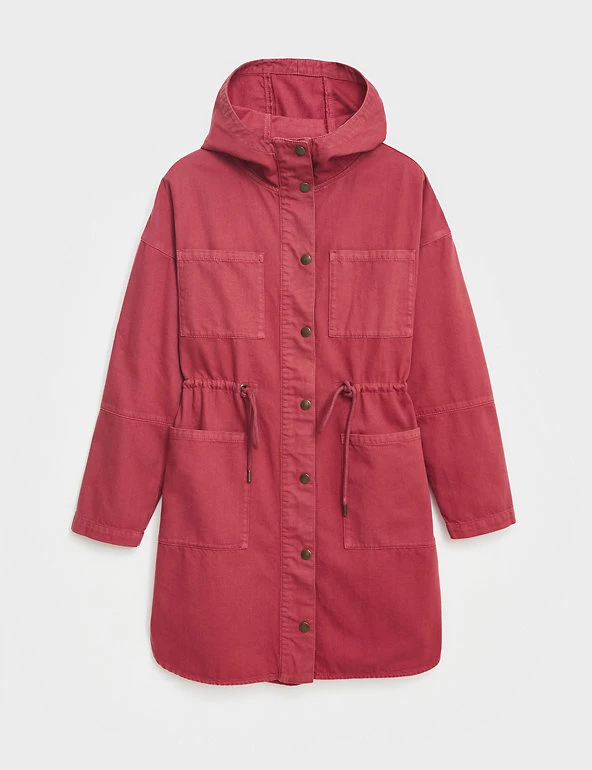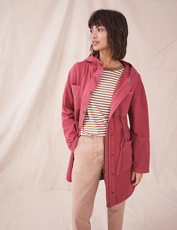 This pure cotton utility jacket from White Stuff is the trans-seasonal piece you didn’t know you needed. It’s cut to a regular fit, with a drawstring waist to nip in your silhouette. A hooded neck will keep you dry and the four-pocket design is perfect for storing your essentials. This piece fastens with a zip and poppers.