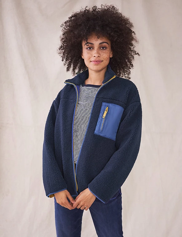Made from cosy borg fabric, this White Stuff jacket makes a welcome layer for chilly days. It’s cut to a comfortable regular fit, with a warm funnel neck style and dropped shoulders for a relaxed look. Contrast trims lend a considered touch. It’s complete with handy side pockets and a zipped pocket to the chest.