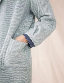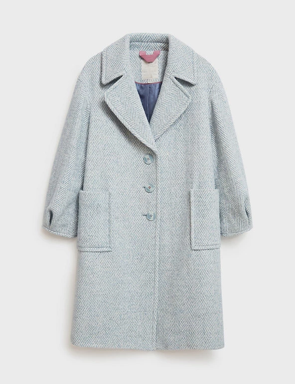 This single-breasted coat from White Stuff is made with a touch of wool for luxurious warmth. It falls to a knee length and is cut to a comfy regular fit for layering. The coat is framed by a v-neckline and smart notches in the oversized lapel collar. Stitching at the cuffs gives the long sleeves subtle volume and two patch pockets on the sides offer practicality.