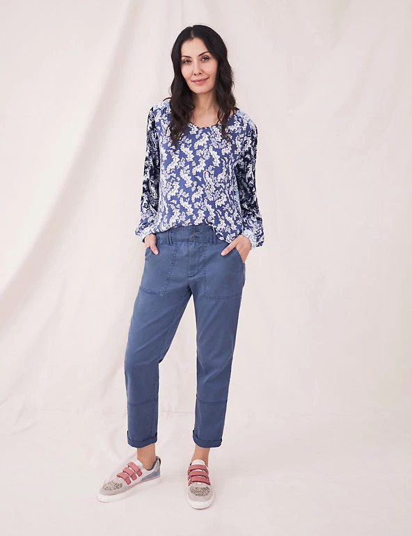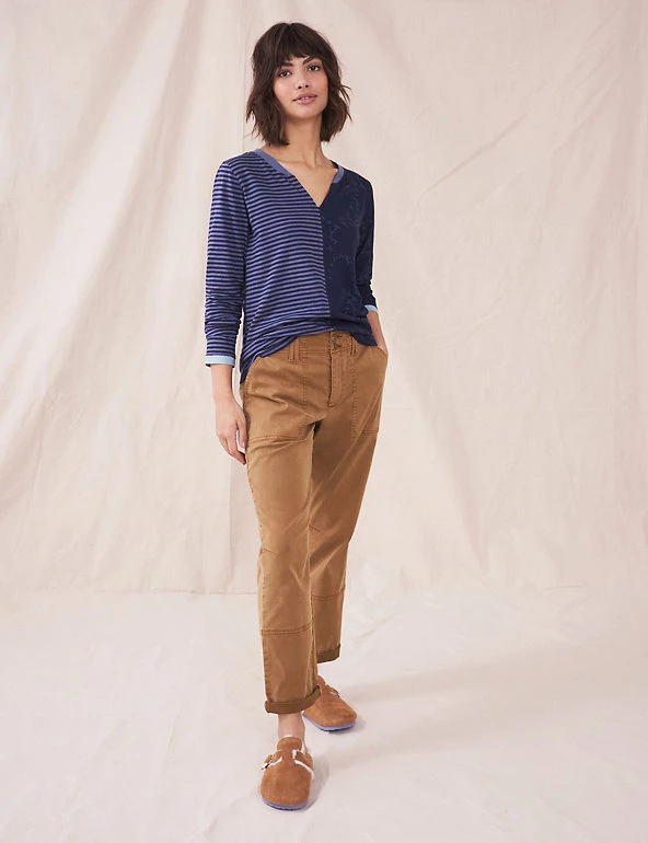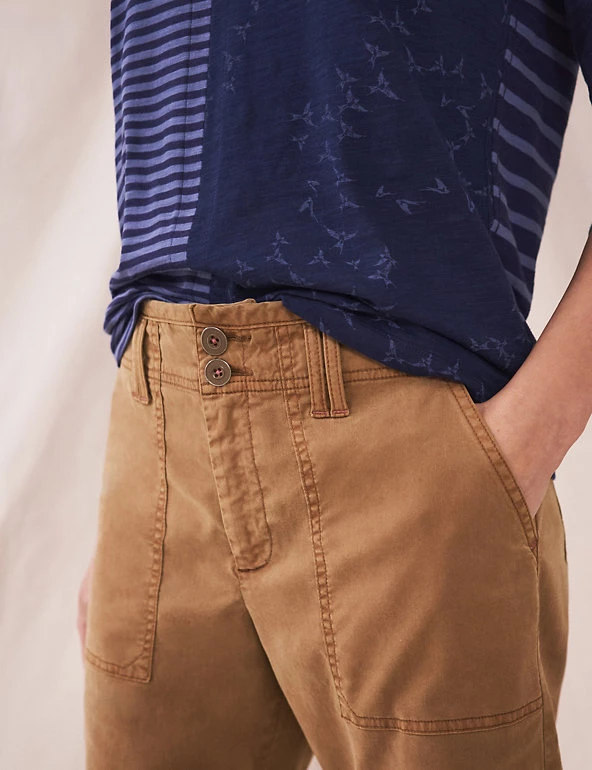 These cotton-blend cargo trousers from White Stuff are a wardrobe essential. This straight-leg pair features a flattering mid-rise waist with a double button and covered zip fastening. Added stretch makes them extra comfy, while side and back pockets are perfect for storing bits and bobs.