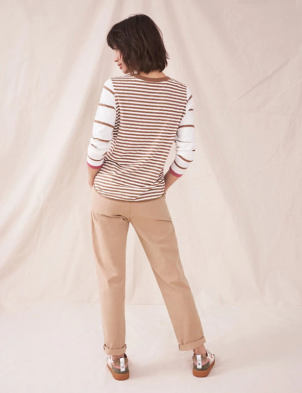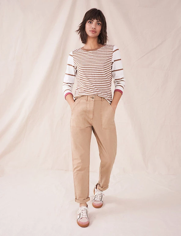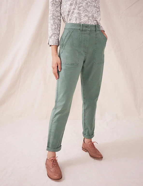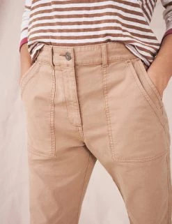 Made from cotton-rich fabric with cool linen, these White Stuff chino trousers were crafted for comfort. They’re cut to an easy slim fit, with a flattering mid-rise waist. Prominent pockets and stitch detailing give them a utility-inspired finish. Made with organic cotton.