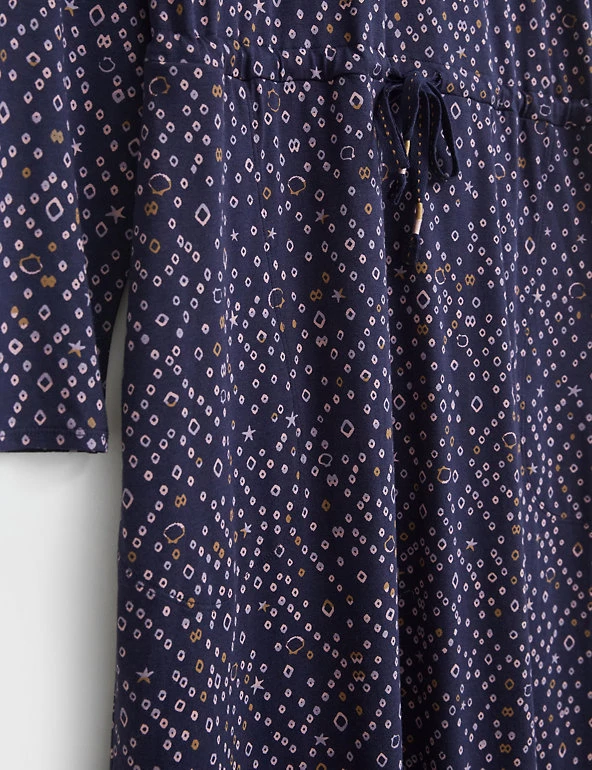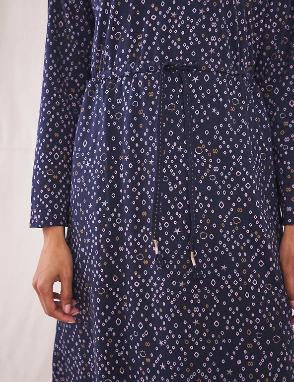 Crafted from a soft cotton-blend jersey with a star and diamond print, this White Stuff slip dress will quickly become a wardrobe hero. It’s cut in a comfy regular fit with added stretch and features a drawstring waist to flatter your figure. The long sleeves add a cosy feel, while a crew neck provides a classic touch. This versatile piece is finished with two discreet side pockets at the seams.