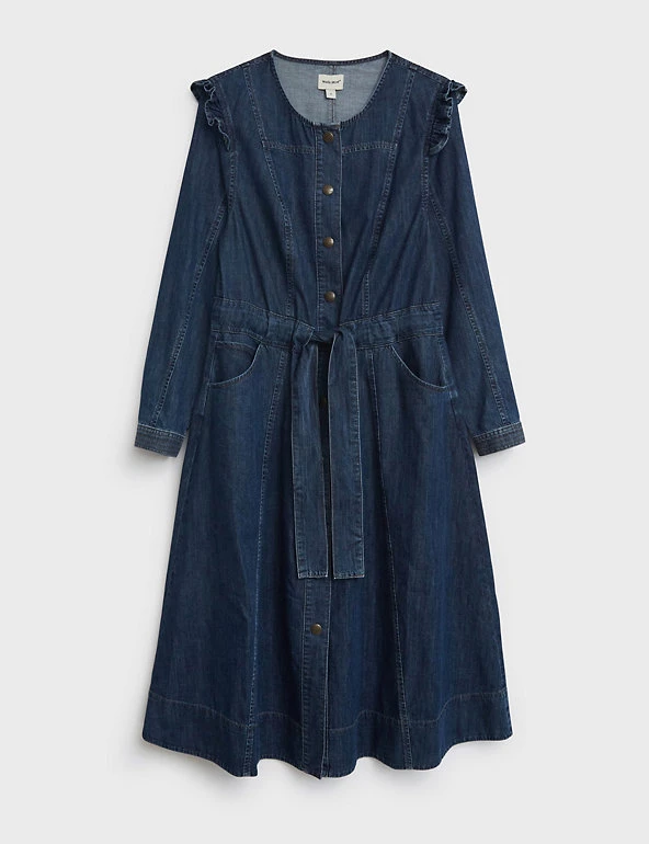 Make room in your wardrobe for this stylish button-through shift dress from White Stuff. It’s designed in a comfy regular fit with a flattering belted waist and falls to a midi length. This casual piece is crafted from pure cotton and features playful frills at the shoulder and a neat round neckline. The front pockets add practicality, while long sleeves with buttoned cuffs provide a smart touch.