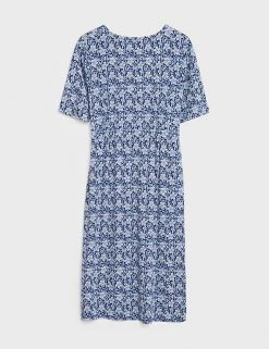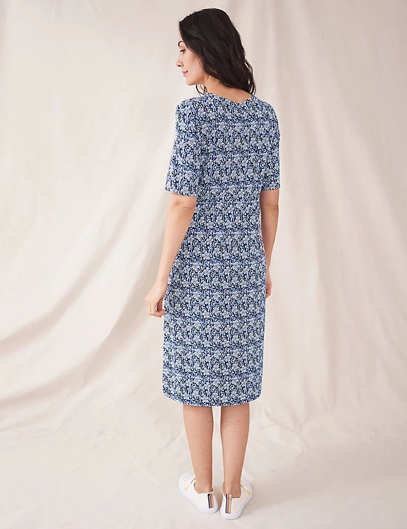 With its floral print and flowing jersey fabric, this tea dress from White Stuff is simple to style up or down. It’s made in a comfortable regular fit, with short sleeves and a feminine v-neckline. The knee length hemline has small side splits for ease of movement. Made with sustainably sourced viscose.